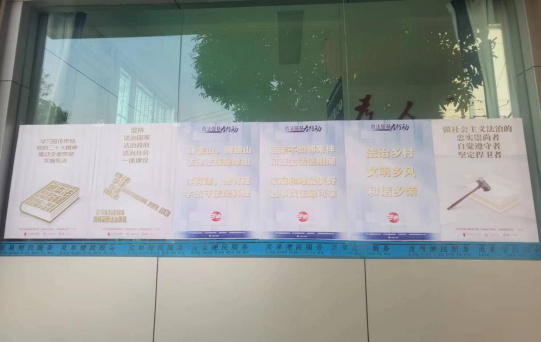 街道构建立体化全方位普法宣传矩阵,利用LED屏滚动播放标语1000余条次,张贴宣传海报920张和宣传横幅60条,将宣传工作延伸到村小组及自发移民点,在全域范围内投放普法宣传内容。