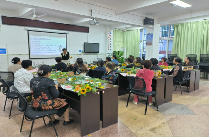 借花寓意,以花言志。插花活动的开展,陶冶了社区居民的情操,让她们在精神文化层面获得更多的满足感和幸福感,艳丽的花朵,也象征着居民群众红红火火、多彩甜蜜的美好生活。