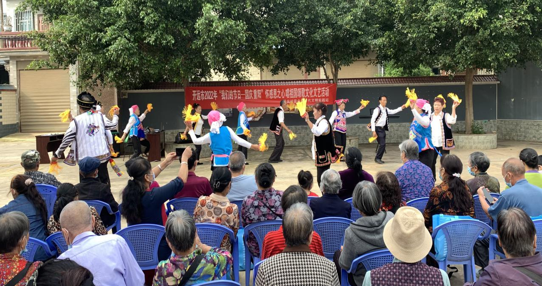 南路村委会开展“携手迎国庆 金秋贺重阳”文艺活动,居民们载歌载舞,宣传孝老爱亲典范,同声祝福祖国繁荣昌盛。