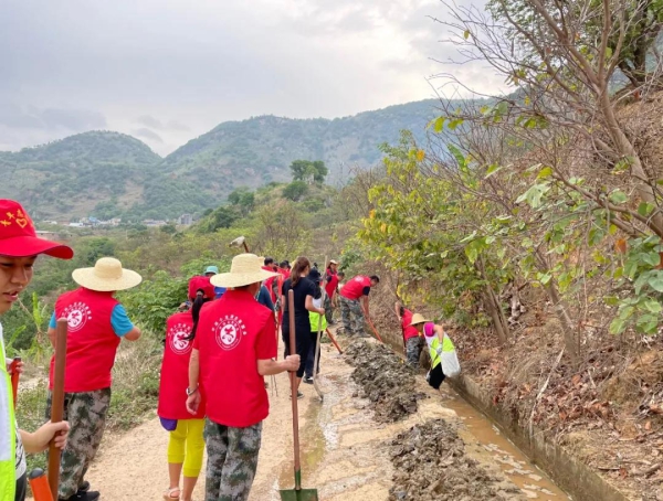 当前正值春耕,由于冬天长时间未通水,导致龙潭村委会主要灌溉的沟渠被大量的淤泥和杂草堵塞,无法灌溉作物。活动当天上午,小龙潭镇党委、政府组织镇机关全体党员及巾帼志愿者、青年志愿者来到龙潭村委会和村民开展挖沟、清淤活动,助力农业生产。