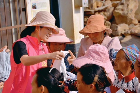 捐赠现场气氛持续火热,老邓耳村村民纷纷聚集到广场,志愿者们将提前清洗干净的衣物折叠整齐摆放在桌上供村民挑选。衣暖人心,村民们都露出了喜悦的笑容。