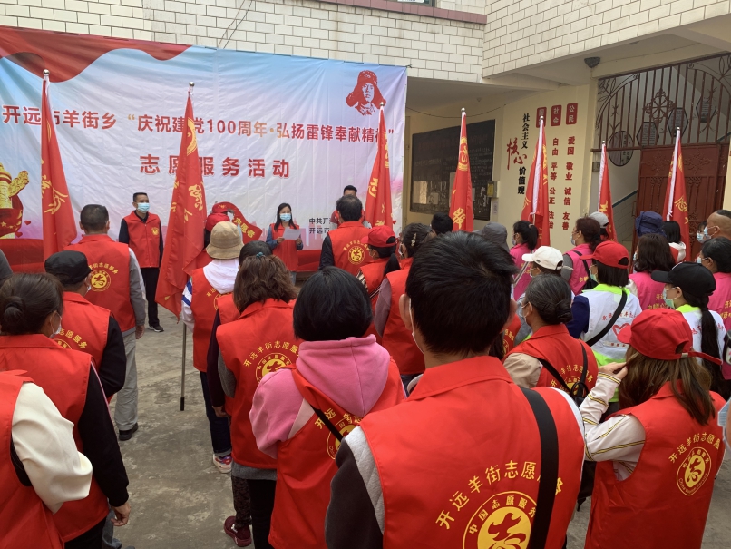 3月5日上午,羊街乡举行“庆祝建党100周年·弘扬雷锋奉献精神”志愿服务活动。活动启动仪式在乡新时代文明实践所院内举行,由乡团委、妇联、学校、司法所、村社区等10支志愿服务队伍100余名志愿者参加集中活动。