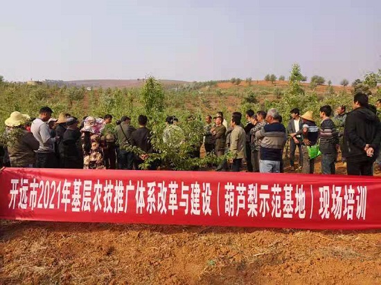 3月9日,灵泉街道农业综合服务中心联合市农业农村局在葫芦梨示范基地(三台铺村委会田房村民小组)开展基层农技推广体系改革与建设现场培训,三台铺村委会、崩打村委会葫芦梨种植大户、石榴种植大户、建档立卡户共100余名农户参训。