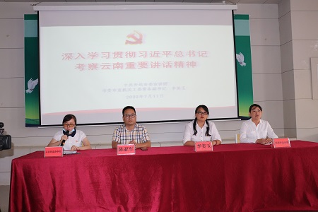 市委宣讲团成员、市委市直机关工委常务副书记李美玉从三个方面结合开远的实际,就习近平总书记在云南考察工作时的重要讲话精神,进行深入浅出、通俗易懂的讲解。她重点阐述了:深刻认识习近平总书记考察云南重要讲话精神的重要意义;深入把握习近平总书记考察云南重要讲话精神的丰富内涵;全面学习贯彻好习近平总书记考察云南重要讲话精神,奋力推进开远跨越式发展。此次专题报告讲座既有理论的高度,又有思想的深度,主题鲜明,条理清晰,具有强大的感染力,为基层广大党员干部上了一堂生动的主题教育课。