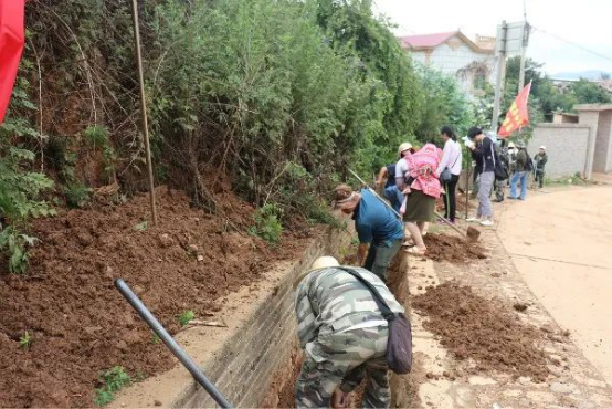 近日我街道西山地区开始降雨,但由于沟渠坝塘常年积淤,泥土、石头、生活垃圾混杂,造成雨水不能顺沟渠汇流到坝塘里,影响了沟渠水流排放和坝塘蓄水,造成了环境和安全问题,引起了村民密切关注,其中邓耳村民小组沟渠淤堵问题较为突出。灵泉街道党工委聚焦群众关心的问题,组织党员干部抬锄挥锹,带领群众一起延沟清理,一干到底,清走了淤积30余厘米厚的泥土,“三面光”沟渠再展新颜,解决了民之所系。