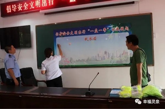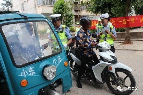 6月5日上午,灵泉街道办事处农机部门联合市公安局交警大队、解化社区开展“一盔一带”安全守护活动。