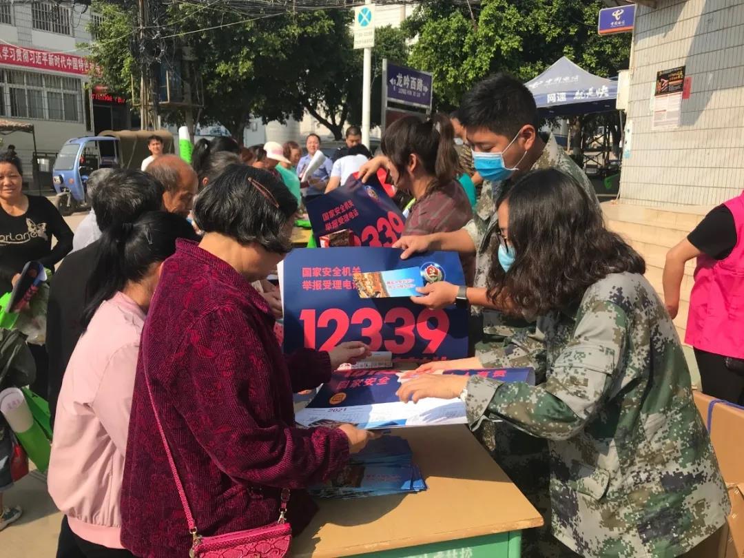 活动充分发挥公共场所人员聚集、贴近群众生活的优势,利用赶集日围绕全民国家安全教育日主题,融入普法元素,在做好防控措施前提下,向群众宣传普及国家安全知识。活动通过发放印有国家安全知识的日历、抽纸等宣传资料,现场普法讲解,扫描反恐二维码答题等形式向来往群众宣传总体国家安全观,结合“七五”普法,大力宣传《国家安全法》、《反间谍法》《国家情报法》《反恐怖主义法》等法律知识,营造国家安全人人有责的浓厚氛围。