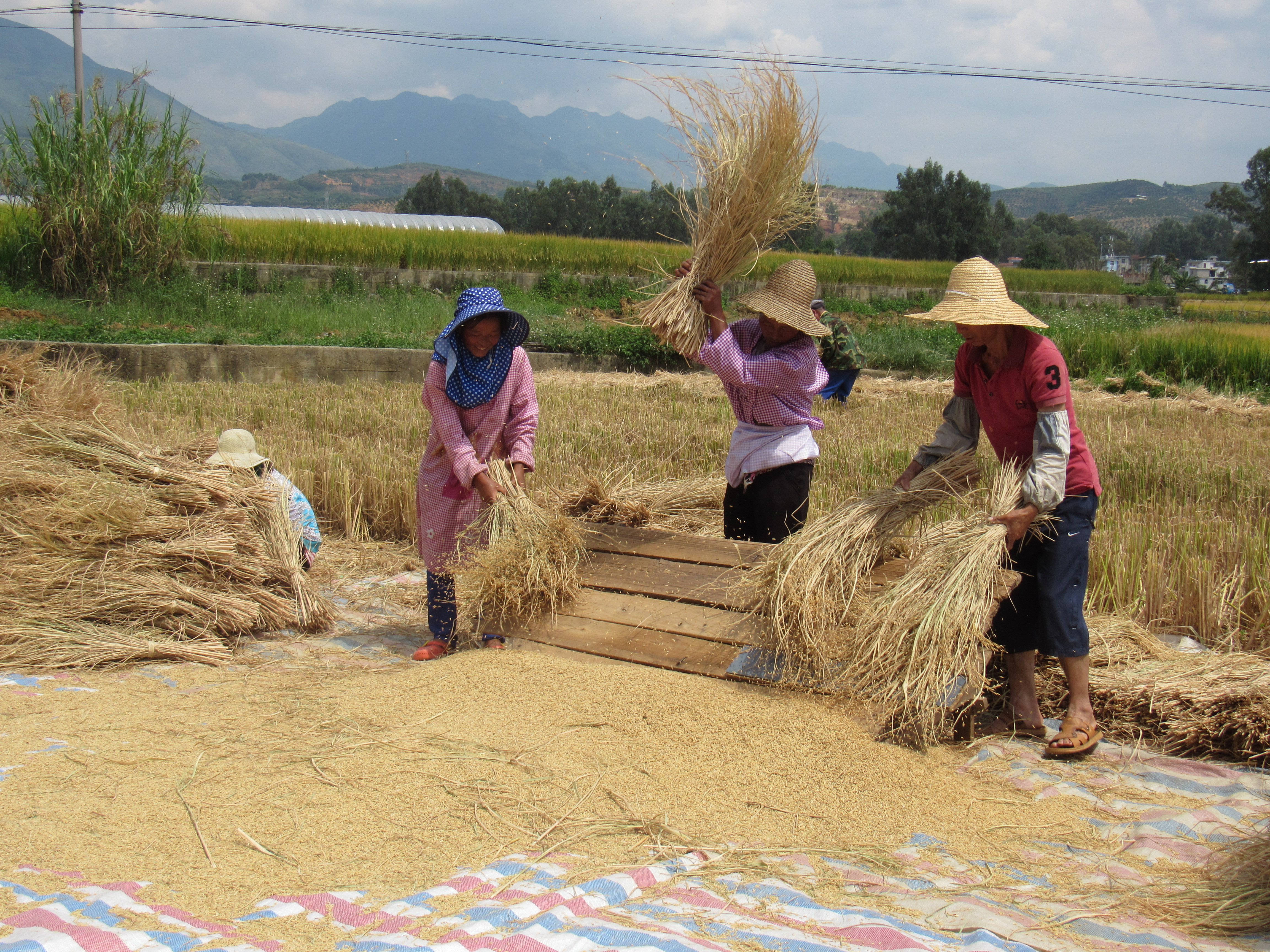 今年该街道的水稻收割还是以人工为主,小坝心片区仁者村委会的卧龙邑、八盘、莲花塘等几个村子的部分农户依托了卧龙邑村成立的农机服务专业合作社,使用了机械收割模式。