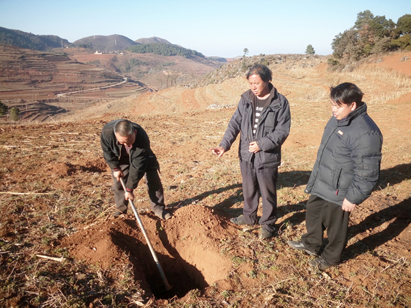 在村民承包的山坡荒地上栽种果树,村民愿意投工投劳动;但在农田耕地里退耕还林、挖坑种树,将对农业生产带来不同程度的影响,群众能不能理解、支持呢?“这是一个4000亩连片的退耕还林项目。去年12月开始推进,当时并没有引起村民的重视。”该乡挂职副乡长、林业站长李付真说,去年年底,乡党委政府推进这个项目时,要求各村干部在广播里宣传。因大部分村民白天外出务工以及政策宣传不够详细,村民挖树坑的动力不足、行动迟缓。另外,虽然是“公司+农户+保底收购”,但在村民心中也有“苹果树会不会水土不服、挂果后卖给谁”的顾虑。为此,李付真带领水管站工作人员,趁村民晚上在家的时间,连夜入户向农户宣传政策,让群众进一步了解到项目真实可靠。