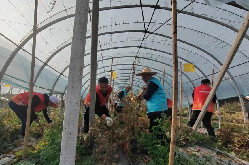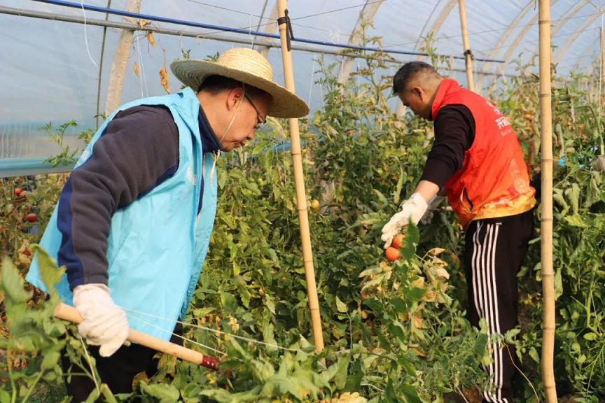 在进行了简短的分工和培训后,党员们迅速奔赴大棚地开展劳动,有的负责采摘番茄,有的负责清理、搬运番茄藤。番茄藤清理完成后,党员们又马不停蹄地投入黄豆播种中,翻耕土地、播种、覆土……播种过程中,党员们不时向农户请教种植经验,确保黄豆能够顺利发芽、茁壮成长。