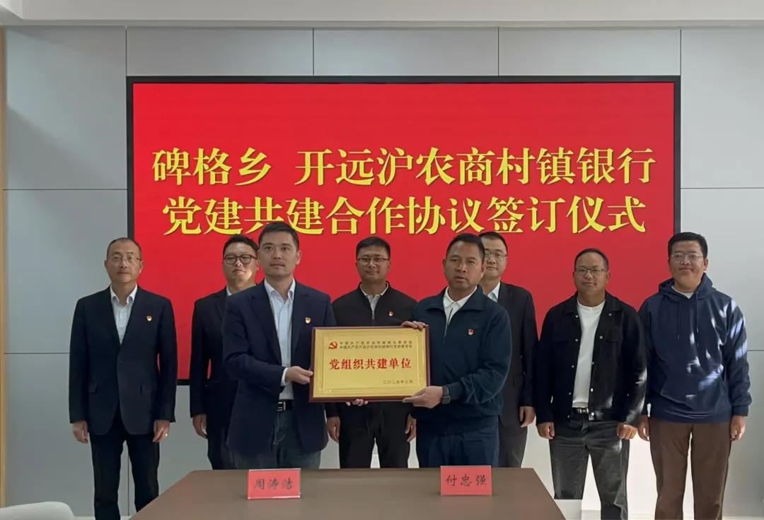 随后,碑格乡党委与开远沪农商村镇银行党支部正式签订了党建共建合作协议,双方将以党建为引领,进一步加强合作交流,实现组织联建、资源共享、服务群众、品牌共创,为推动双方高质量发展注入新兴动力。
