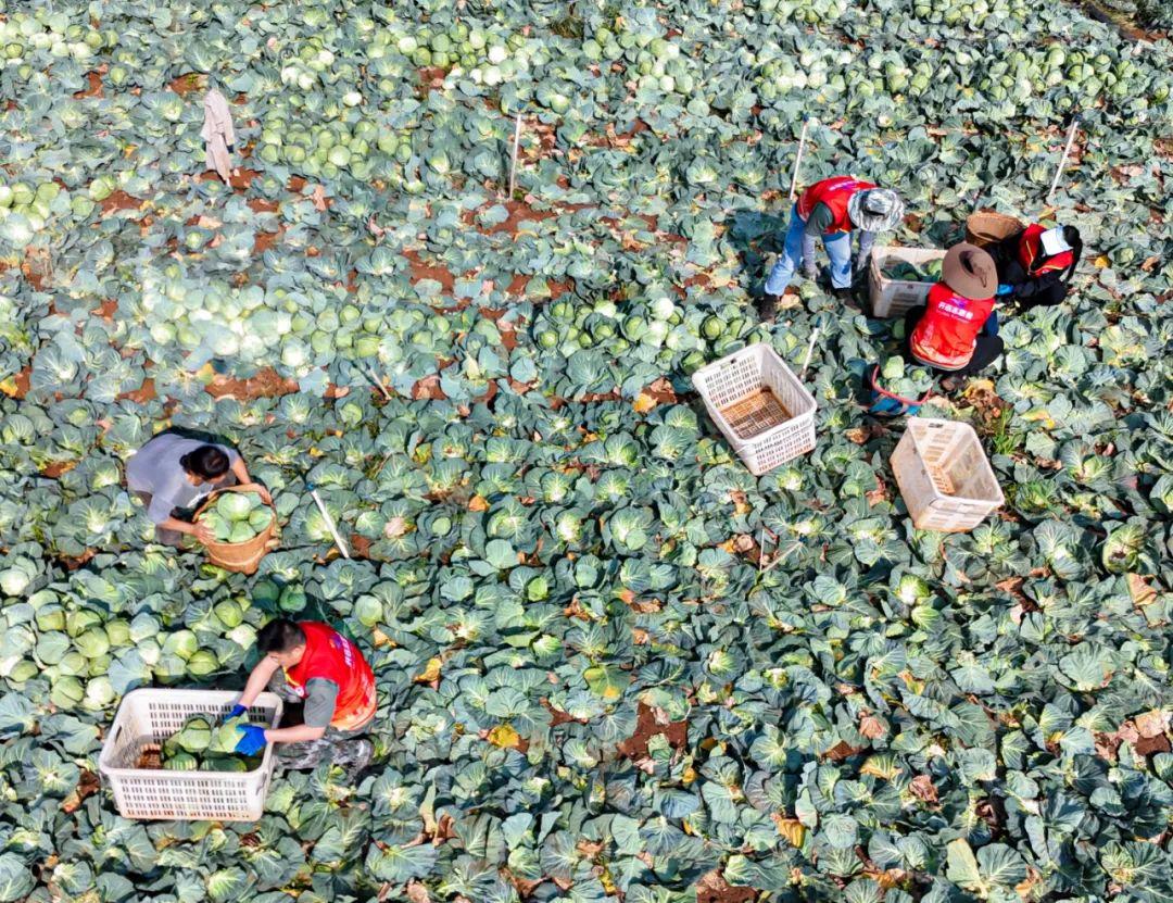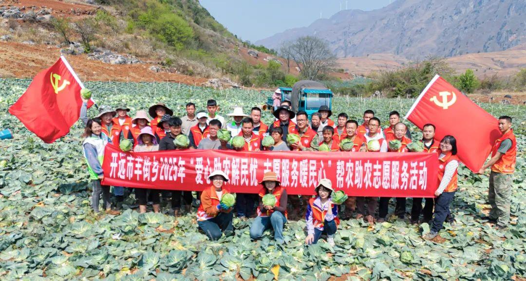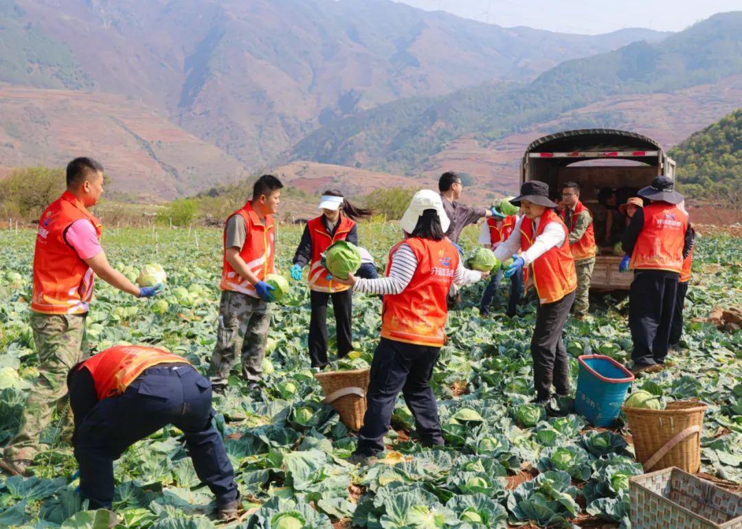 活动前,羊街乡采取“村党总支摸排+确定帮扶对象+上报乡党委+乡党委组织党员干部”的方式,确定帮扶对象为大美伍村王华户,其家中种植“小铁头”(甘蓝)、松花菜等农作物59亩,家庭劳动力短缺。3月25日,乡机关党员干部走进村民王华家的田里,和农户正勠力同心一起采收“小铁头”(甘蓝),“志愿红+甘蓝绿”描绘出一幅忙碌热闹的美好“春收图”。