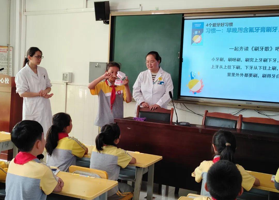 宣讲内容涵盖健康生活方式、口腔保健、中医穴位知识等方面。活动中,口腔科医生从“刷牙歌”为切入点,生动讲解了牙齿结构、龋齿形成原因及预防方法,以“圆弧刷牙法”“巴氏刷牙法”的现场教学与同学们进行互动,同学们争先恐后上台演示“牙齿模型”刷牙操作,提问环节增强了口腔保健知识记忆,同学们纷纷争做“护牙小卫士”。