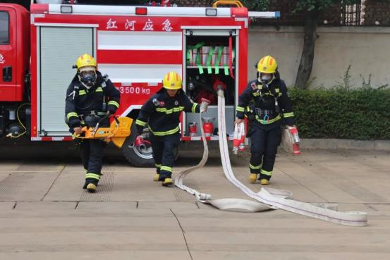 在演练过程中,队员们配合默契,动作娴熟,充分展示了扎实的专业技能和良好的应急反应能力。此次消防演练,不仅检验了消防站的应急预案和装备设施的可靠性,也进一步提高了消防队员的实战能力和协同作战水平,为应对可能发生的火灾事故奠定了坚实的基础。