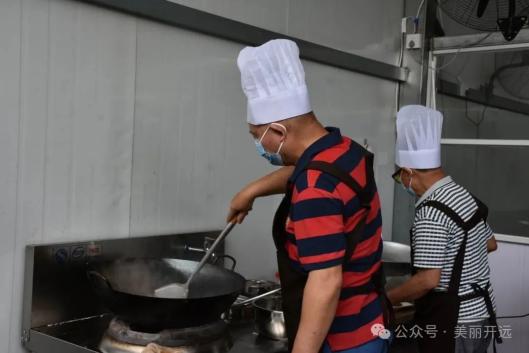 与蔬菜分拣车间仅一墙之隔的“一元食堂”里,聚源社区副主任兼义务厨师周旋凯正根据用餐信息认真备菜。自2025年1月正式运营以来,食堂采用“社区主体运营 + 公益性”模式,从食材选购到菜品制作,都严格遵循卫生健康标准,精心搭配荤素菜品。每天为务工人员提供1荤2素1汤的套菜,素菜与米饭每份1元,荤菜每份3元。