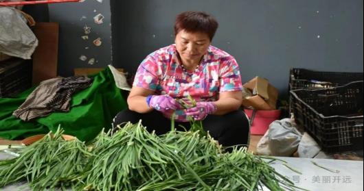 走进聚源社区的“零工驿站”,充满生活气息的场景随处可见:工人们在熟练地分拣韭菜,一旁,色彩斑斓的儿童滑梯十分显眼。平日里,滑梯区域是安静的等候区,而每到放学时分,这里就变成了务工人员子女的临时托管场所。蔬菜分拣车间不仅为务工人员提供了稳定的就业岗位,更为他们的家庭托起了希望和未来。
