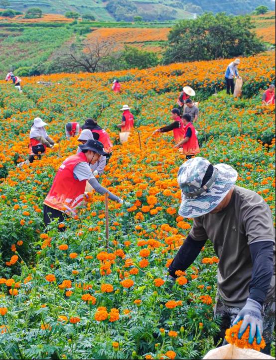 每一滴汗水都在滋养信任,每一次俯身都在夯实根基。党员干部扑下身子,与群众同围一垄地,同流一身汗。田间地头的辛劳,无声地消融着无形的隔阂。党群干群的纽带,在泥土的芬芳与共同的辛劳中,如万寿菊的根系般,进一步向深处牢牢扎紧。
