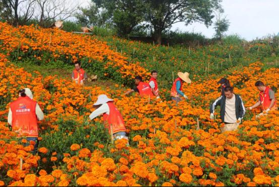 此次志愿服务活动,经过近四个小时的劳动,采收万寿菊6亩3000公斤。一袋袋金黄的万寿菊承载着汗水与期望,进入收购点后将直接转化为脱贫群众实实在在的经济收益。