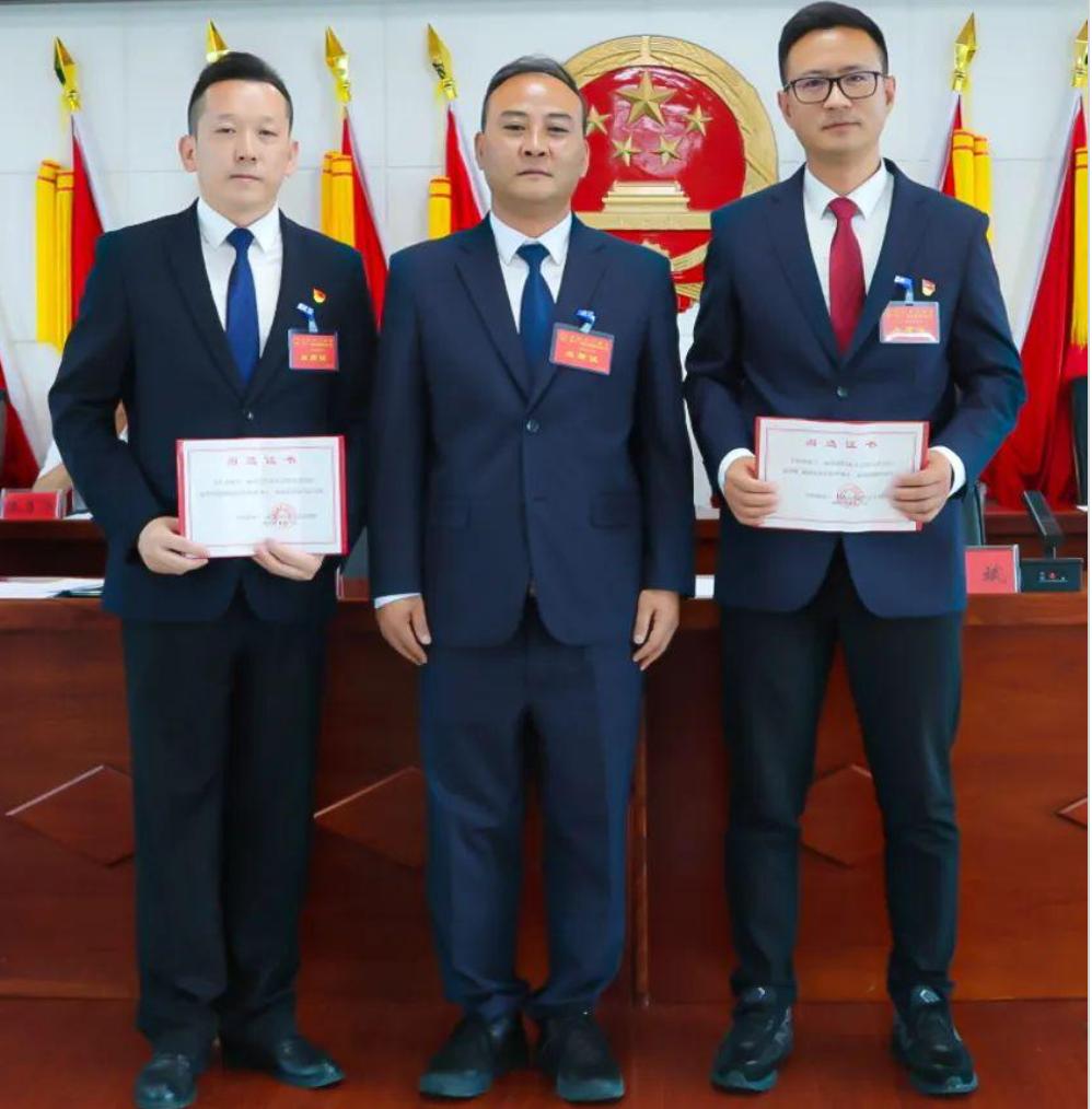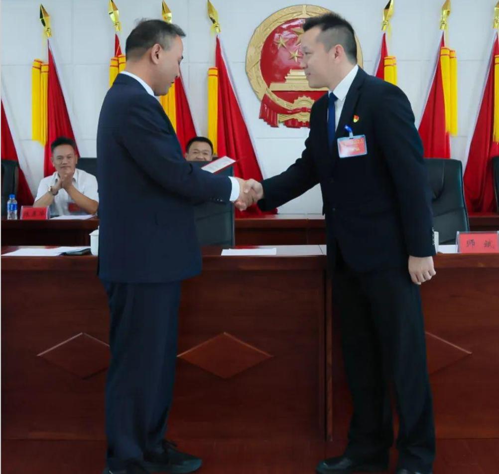 乡党委书记保家聪向当选的师斌乡长、叶东隆主席颁发当选证书。
