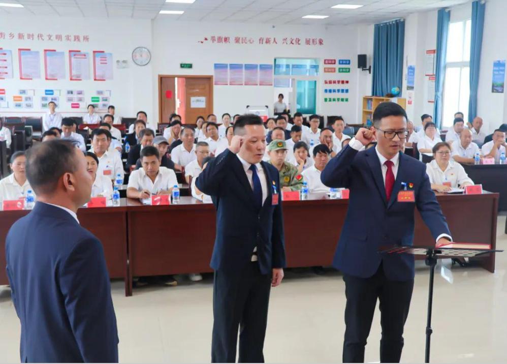 新当选的羊街乡人民政府乡长、乡人大主席团主席向《中华人民共和国宪法》宣誓,乡党委书记保家聪监誓。