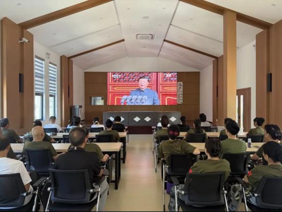 收看现场,全体人员神情专注,凝神聆听习近平总书记重要讲话,深切体悟中国人民抗日战争胜利的伟大意义,共同铭记历史、缅怀先烈、珍爱和平、开创未来。