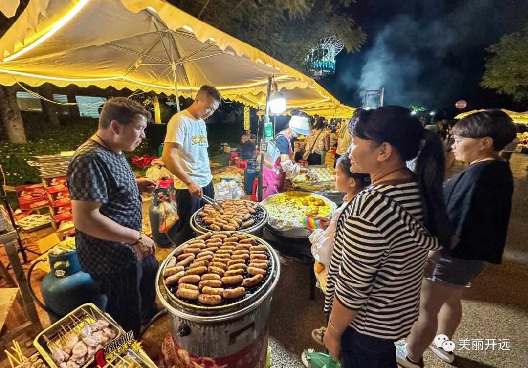 除了文艺演出,知花小镇已成功打造出一条美食小吃街。傍晚时分来到这里,特色烧烤、烤奶茶、炸洋芋等各式小吃琳琅满目,还有小朋友喜欢的玩具车、青蛙气球、芭比娃娃等。