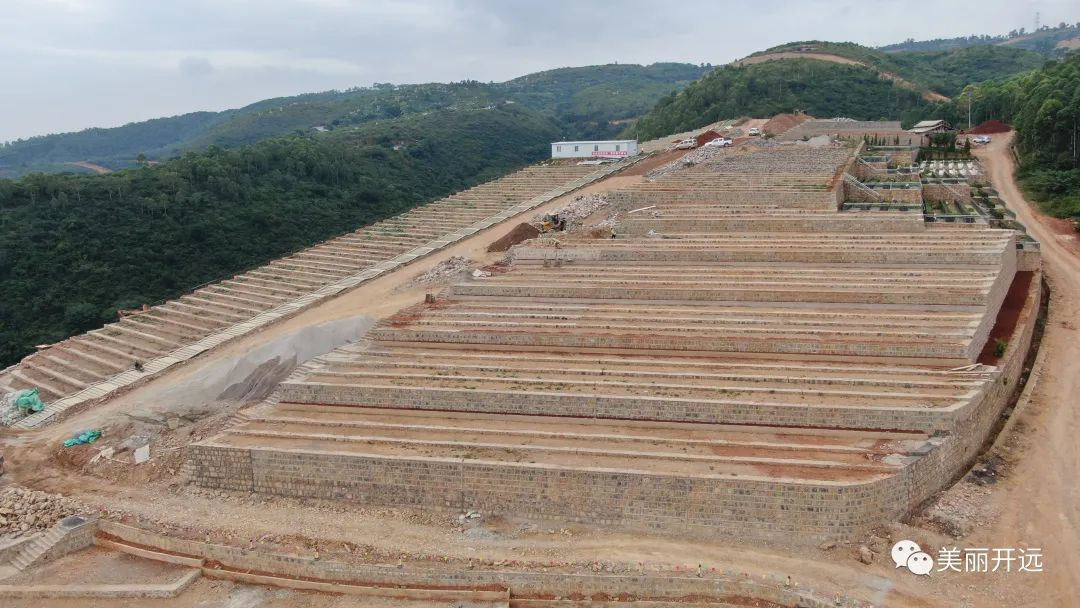 “开远市殡葬服务一体化建设项目——公墓墓区建设工程(一期)。项目总投资3176.68万元,截至2023年11月23日,已完成投资2200余万元,完成墓区挡墙和平台建设85%工程量,完成4条墓区主干道平整。”