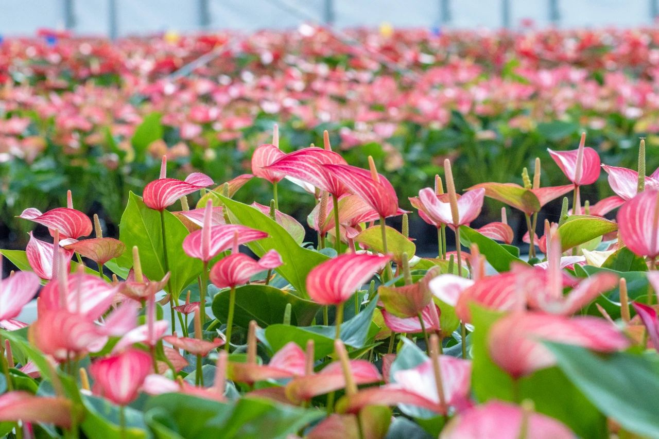 得益于产业园先进的设施设备,花卉种植不再“靠天吃饭”,在开远市巨扬园艺有限公司内种植的蝴蝶兰、红掌和杂属兰,现已实现全年种植。