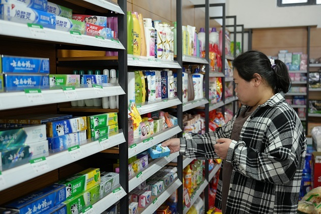 居民杨怡然进行生活采买(2023年12月5日摄)