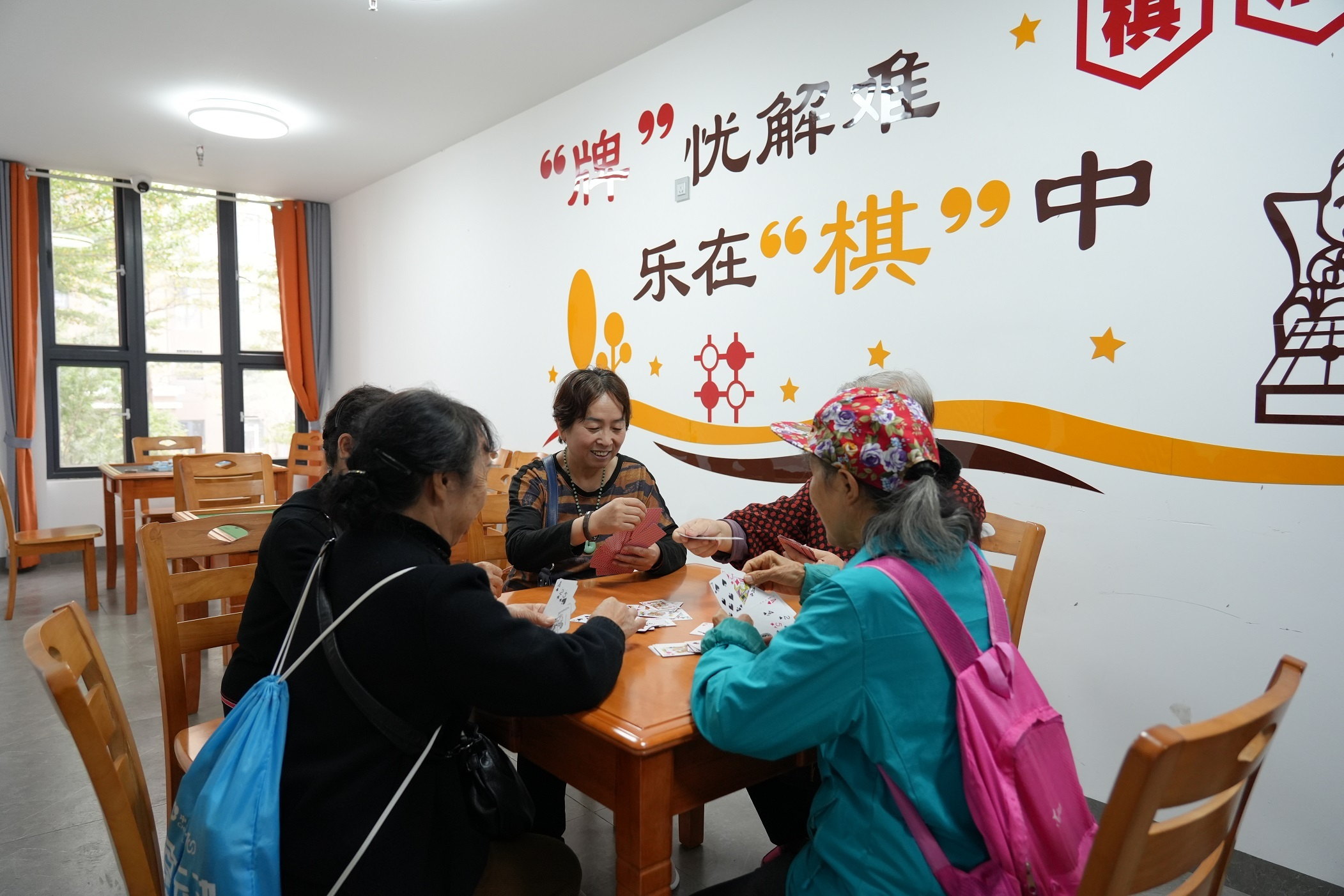 居民熊丽琼在综合养老服务中心休闲娱乐(2023年12月5日摄)
