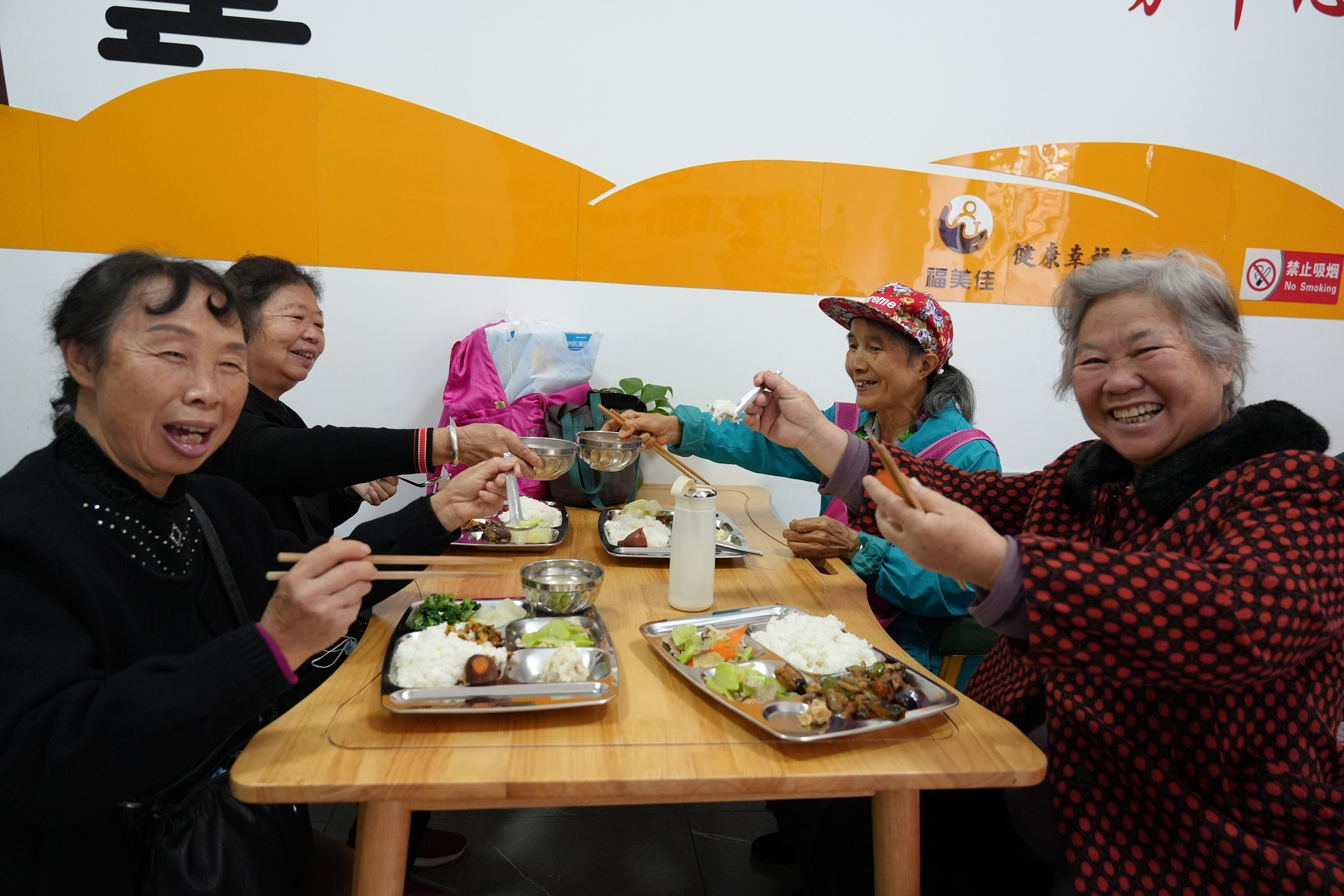 老年群众在老年幸福食堂快乐就餐(2023年12月5日摄)