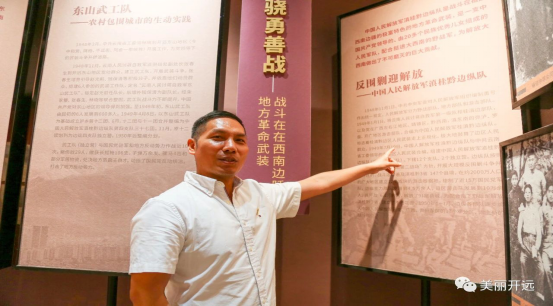 “70年多前,这里是中国人民解放军滇桂黔边纵队第十支队开远护乡第九团(以下简称护九团)的组建地。”孔令飞介绍,地处西南边陲的开远历来是兵家必争之地,解放前夕,国民党长期盘据于此,且有重兵把守。虽然解放事业面临严竣挑战,但在中国共产党的领导下,开远革命者与国民党斗智斗勇,展开了艰苦卓绝的斗争,推动了开远解放事业全面胜利。