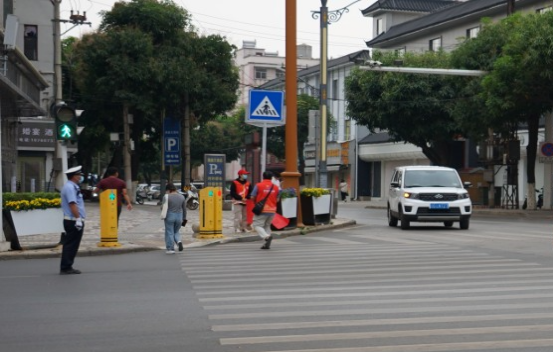 文明交通离不开交警的执法和引导,也离不开交通劝导员的文明劝导。