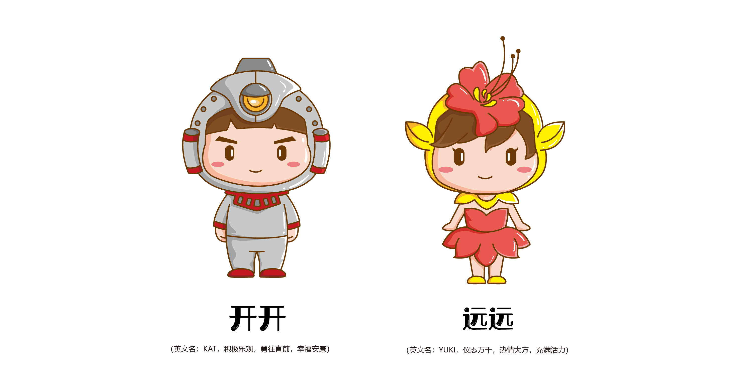 女孩,中文名:远远,英文名:Yuki,远远以凤凰花为原型进行设计,代表着开远是一座充满温度的生态宜居之城。