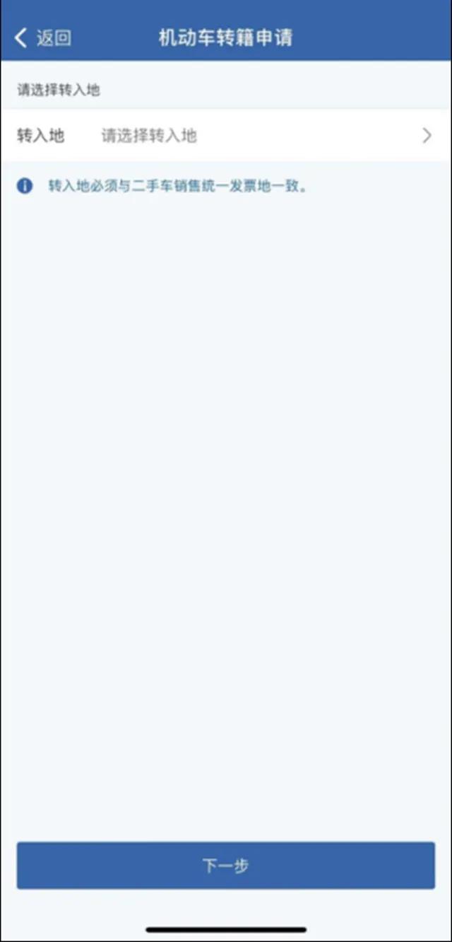 对二手车在转入地交易的,现机动车所有人可以通过公安交通管理互联网服务平台向转入地车辆管理所提出申请车辆跨辖区转移登记。申请前,应当认真阅读“业务须知”,确认机动车是否符合转入地相关规定,按照提示录入申请信息。