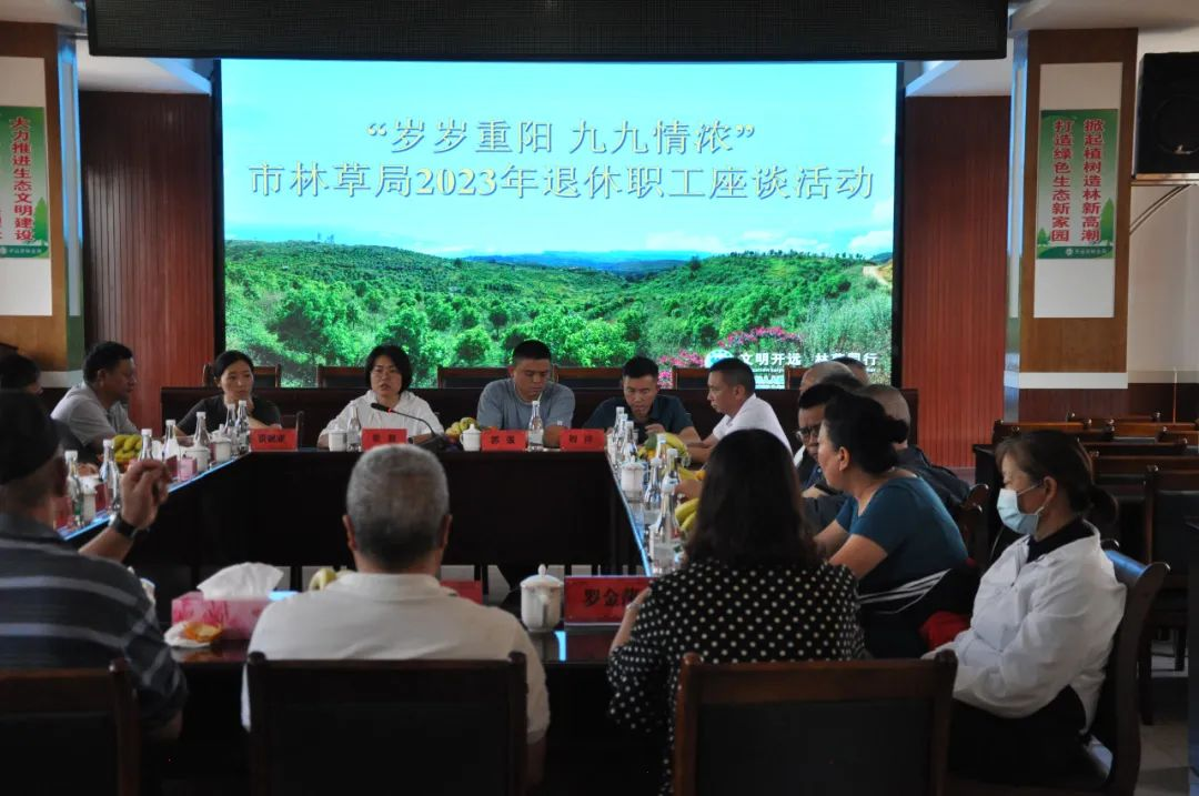 岁暮金秋,重阳佳时,市林草局特举行退休职工座谈活动。鲜果满桌,唔言畅谈,新老两代林草人在亲切温馨的氛围中分享自己对于林草未来发展的期许创见。