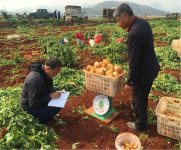 近年来,开远市农业农村局因势利导、积极引导农民调整农业产业结构、利用冬闲田及旱地种植冬马铃薯,注重新品种新技术的推广应用,加大冬薯生产技术培训,将冬种马铃薯作为农业增效、农民增收的重要措施。该乡冬马铃薯深受长沙、武汉、北京等地客商的青睐,大薯销售价格在2.5元/公斤至3.6元/公斤、中薯价格1.2元/公斤、小薯也在0.5元/公斤。通过技术人员对5户种植户的田间测产,最高产量4673.61公斤,最低产量2842.07公斤;大薯率最高者84.42%,最低为64.23%;亩产值最高13808.31元,最低亩产值为7490.77元。