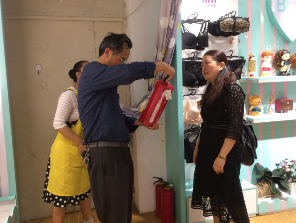 图为:在资产经营管理有限公司的出租商铺检查灭火器材