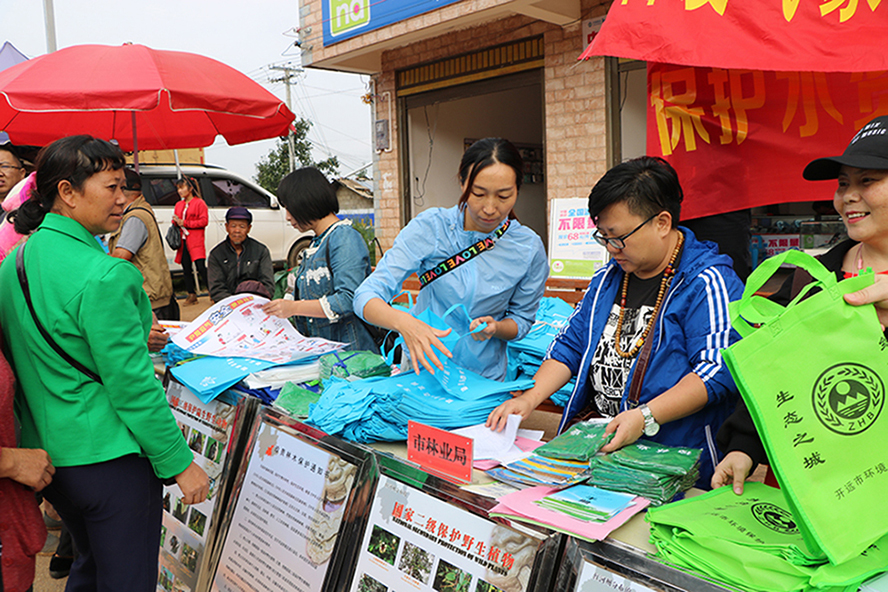 我局采用贴近百姓生活的方式向过往群众口头宣传、展板展示、发放宣传单、围裙、环保购物袋等,宣传林业建设和发展方面的科技知识。呼吁广大基层群众爱护生态环境、共建生态文明、共享生态成果。活动中,林业保护以宣传《森林法》、《野生动植物保护法》、《云南省湿地保护条例》等为基准,大力开展森林资源保护、湿地保护、野生动植物保护、生物多样性保护等宣传工作。
