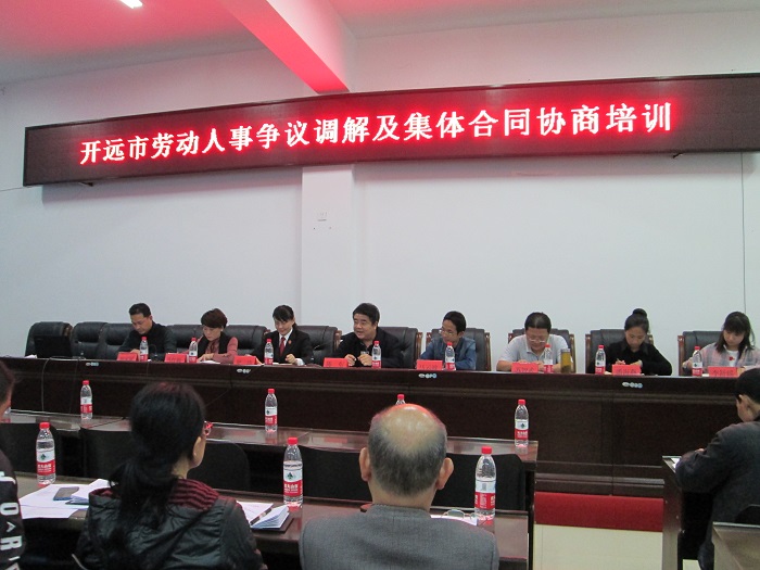 培训中,市人社局信访和调解仲裁科余晓锋、市人民法院民一庭副庭长马磊两位同志引入劳动人事争议典型案例,分别从劳动人事争议调解程序、调解技巧进行了深入浅出地讲解,同时对案例进行系统剖析。市总工会集体协商指导员针对集体合同协商程序进行了讲解。云南开远一行电力有限责任公司就集体协商工作进行了经验交流。