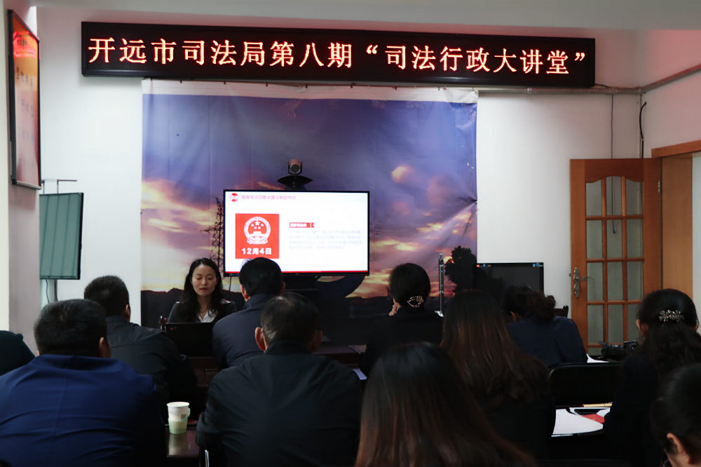 二是开展“12.4”宪法知识专题学习。12月3日在第八期“司法行政大讲堂”活动上,由法治宣传科科长傅映梅同志围绕“12·4”国家宪法日给全局干部进行专题讲座。从宪法的作用与意义到国家宪法日暨全国法制宣传日设立的意义、2018年宪法修改内容及意义、弘扬宪法精神、履行宪法使命等几方面做了详细的讲解。专题讲座内容丰富、生动深刻,对参会干部职工深刻领会国家宪法日知识,推进依宪履职、依法行政具有很强的指导意义。