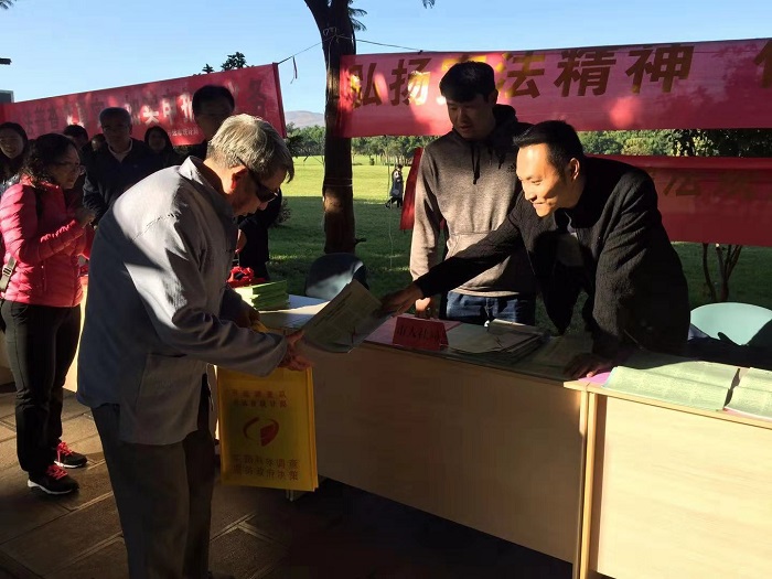 2018年12月2日,由中共开远市委、市人民政府主办,市委政法委、市委宣传部、市司法局、市委依法治市办、市委依法治市领导小组法治宣传教育专项组承办,多部门联合参与的开远市2018年“12.4”国家宪法日和提升群众安全感满意度系列宣传活动隆重举行,开远市人社局组织4名工作人员参加了此次活动。