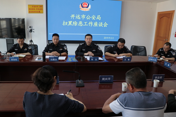 为深入贯彻落实习近平总书记重要指示精神,根据党中央国务院、云南省、红河州、开远市委市政府关于开展扫黑除恶专项斗争的决策和部署,按照《云南省公安机关扫黑除恶专项斗争百日攻坚大会战行动方案》要求,全面深化开展好扫黑除恶专项工作,近日,开远市公安局邀请了党代表、人大代表及各社区、村委会代表就开远市扫黑除恶专项斗争工作进行了座谈,听取了社会各界代表对扫黑除恶工作的意见和建议。