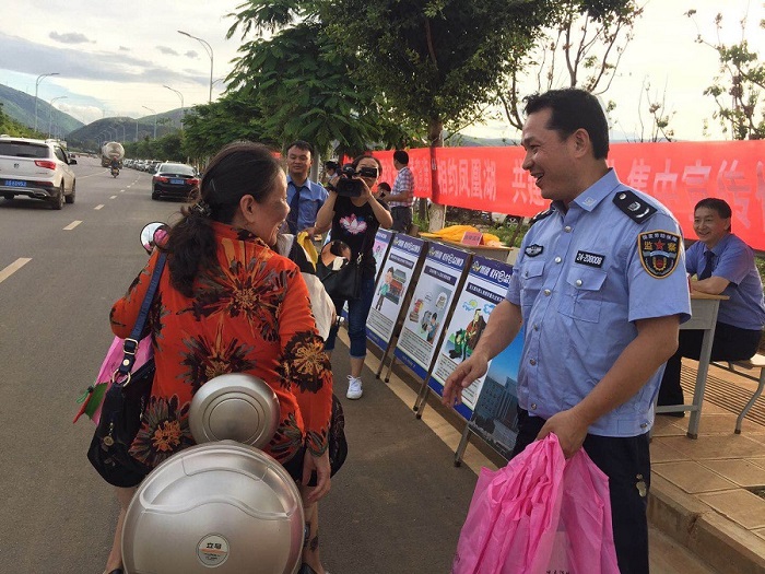 近日,由开远市综治委发起,多部门联合参与的开远市2018年提升群众安全感满意度“相约凤凰湖 共建平安城”集中宣传活动在美丽的凤凰湖畔顺利举行。开远市人社局组织劳动保障监察人员参与了此次活动。活动中,工作人员积极向过往群众宣传近几年来开远市平安建设所取得的丰硕成果,介绍今年全省群众安全感满意度电话测评情况,引导广大群众积极支持和参与电话测评工作。同时,还对劳动保障相关法律法规进行了宣传。此次活动,共发放宣传环保袋200余个、宣传资料500余份。