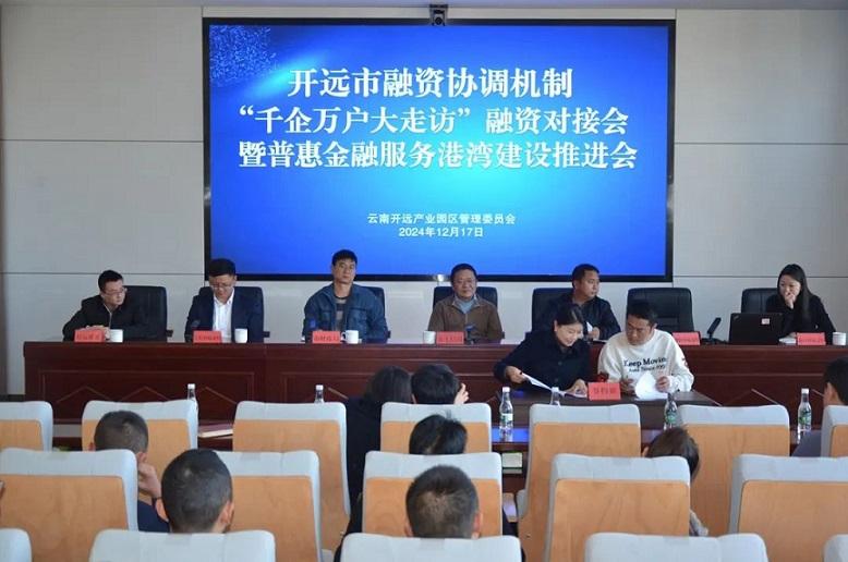 2024年12月17日,国家金融监督管理总局开远监管支局联合市工信局、市财政局、云南开远产业园区管委会及在开相关银行业金融机构,召开开远市融资协调机制“千企万户大走访”融资对接会暨普惠金融服务港湾建设推进会,云南开远产业园区入驻企业代表共50余人参加会议。