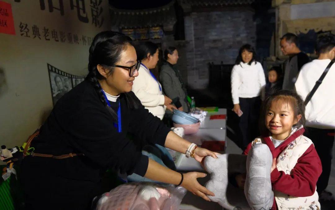 猜对答案的市民游客兴高采烈地领取小奖品,脸上洋溢着幸福的笑容。