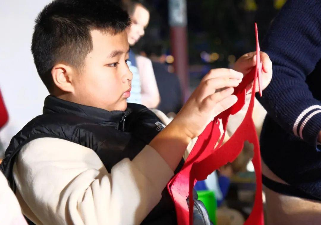 拓展环节,孩子们在老师的指导下,亲手制作纸艺灯笼,锻炼了动手能力,也深入了解了传统节日文化。