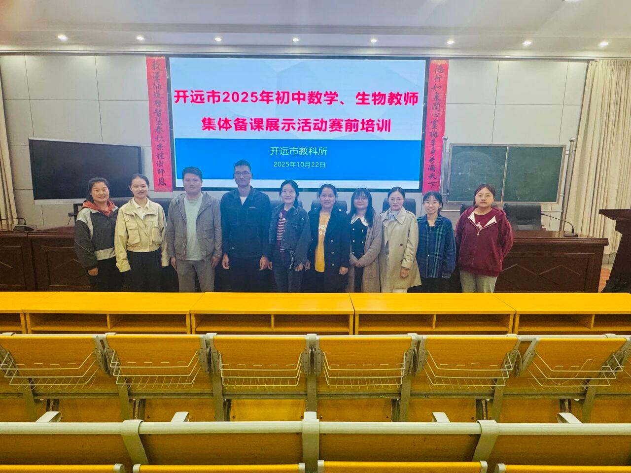 “工欲善其事,必先利其器。”正值开远市初中数学三年攻坚行动推进关键期,为保障2025年全市初中数学教师集体备课展示活动规范开展、有效落地,助力教学攻坚实现新突破,2025年10月22日下午,开远市教育科学研究所在开远市第五中学校阶梯教室组织开展了赛前培训,全市30位参赛教师参加了本次培训。