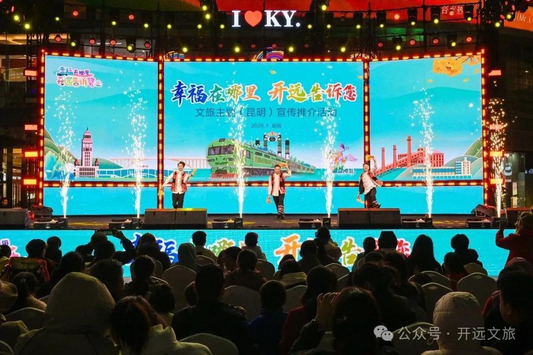 2026年元旦期间,开远市文化和旅游局携文旅企业在昆明同德广场举办“幸福在哪里开远告诉您”文旅推介活动,提前预热春节市场。通过发布“百年滇越铁路·漫旅米轨”等三条精品线路,以及霸王鞭、烟盒舞等非遗互动,成功“种草”大量游客,为春节黄金周客流增长奠定基础,荣登抖音同城榜第二。
