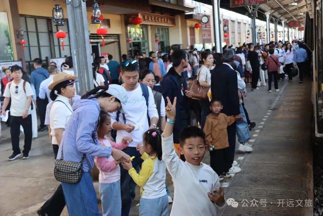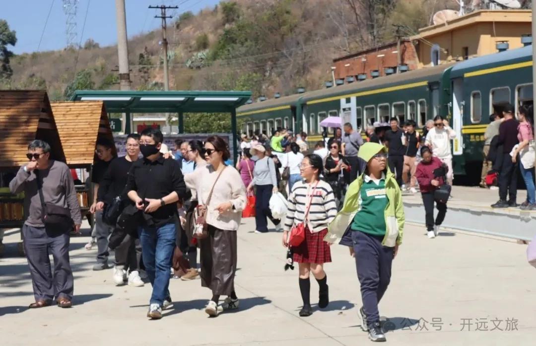 今年1月,米轨观光小火车终点站——大塔站完成全面提升改造,以崭新面貌迎接八方来客,春节假日,开远市南北轨道交通经营管理有限公司举办“百人祈福抽马年盲盒”活动,将百年米轨文化与新春祈福巧妙结合,成为网红打卡点。